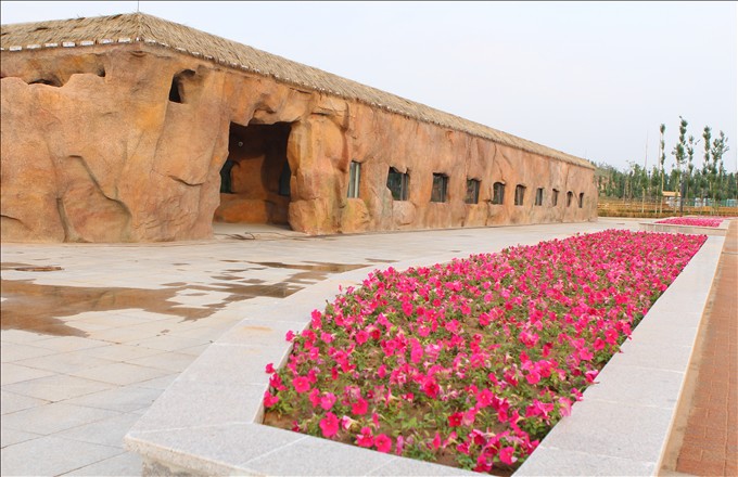 斑馬羚羊鴕鳥苑:位于非洲區(qū)的南端。總建筑面積1999平方米,建筑高度6.05米。結(jié)構(gòu)形式為鋼筋混凝土框架,圈舍內(nèi)飼養(yǎng)斑馬、羚羊、鴕鳥各20只。建筑設(shè)計(jì)外立面采用塑形泥仿非洲巖壁肌理,檐柱塑形泥仿非洲喬木狀,屋面鋪設(shè)非洲茅草。一條游覽車行道路貫穿室外園與高空步道一起構(gòu)成一個(gè)三維的多角度觀察的游覽體系。